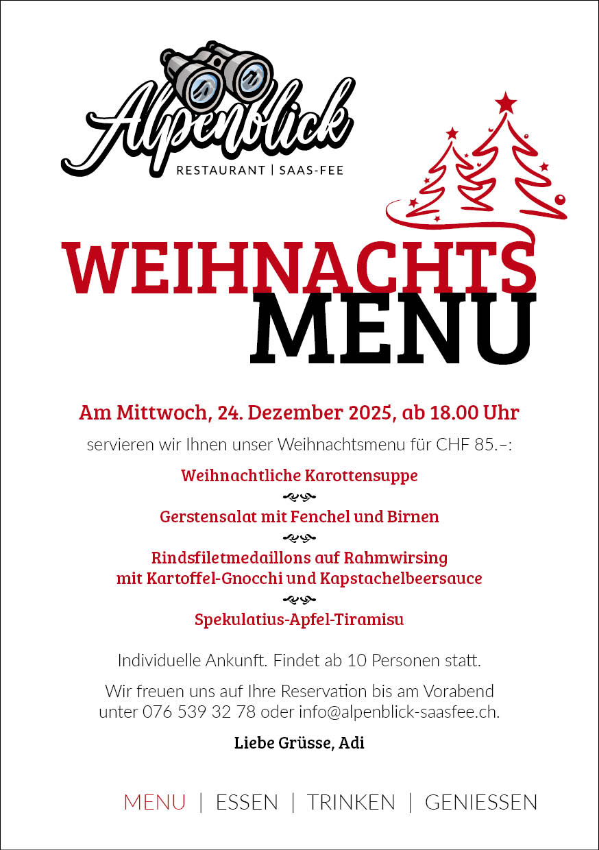 - Mittwoch, 24. Dezember 2025: Weihnachtsmenu